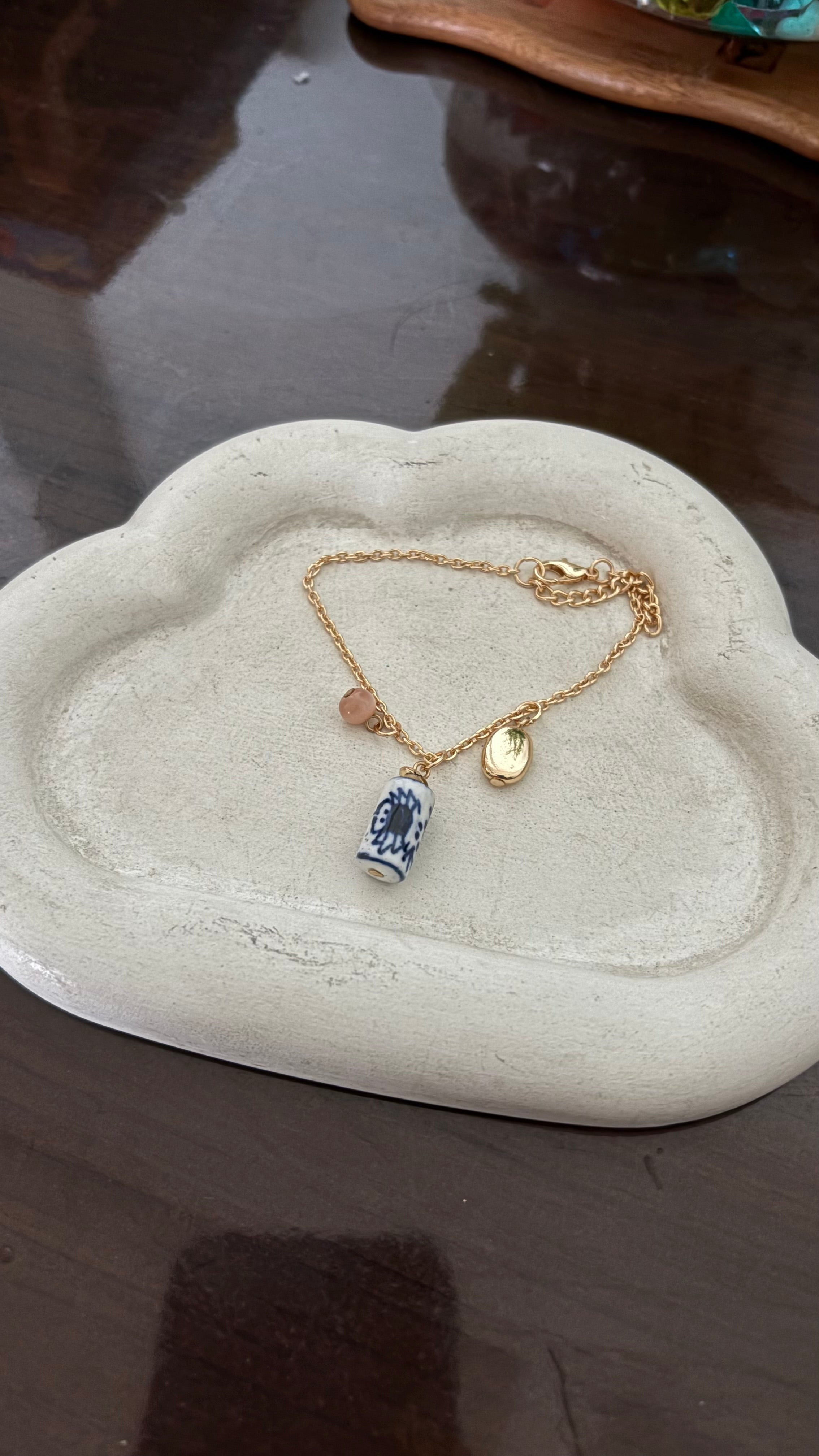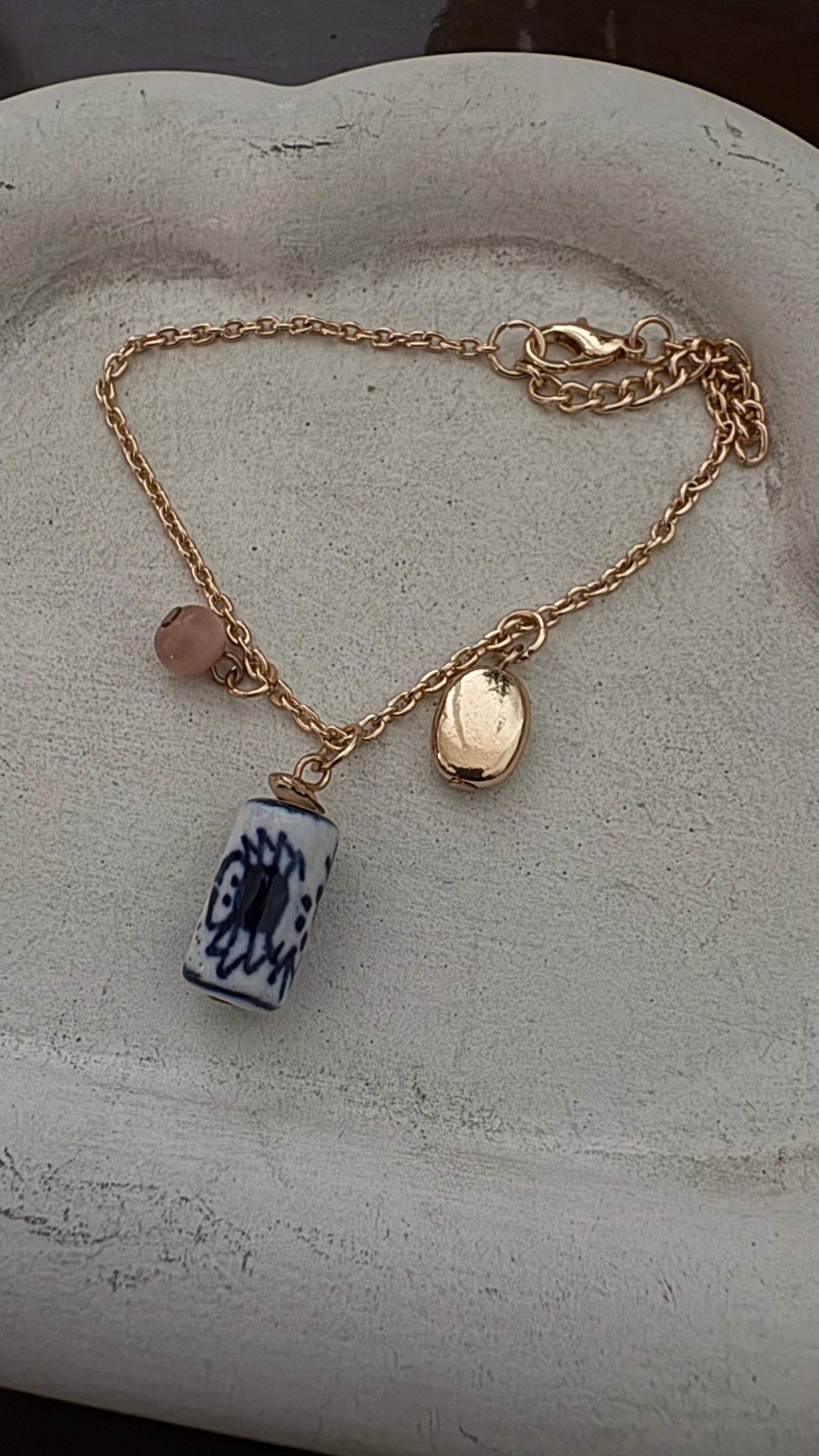 Pottery Bead Gold Plated Bracelet