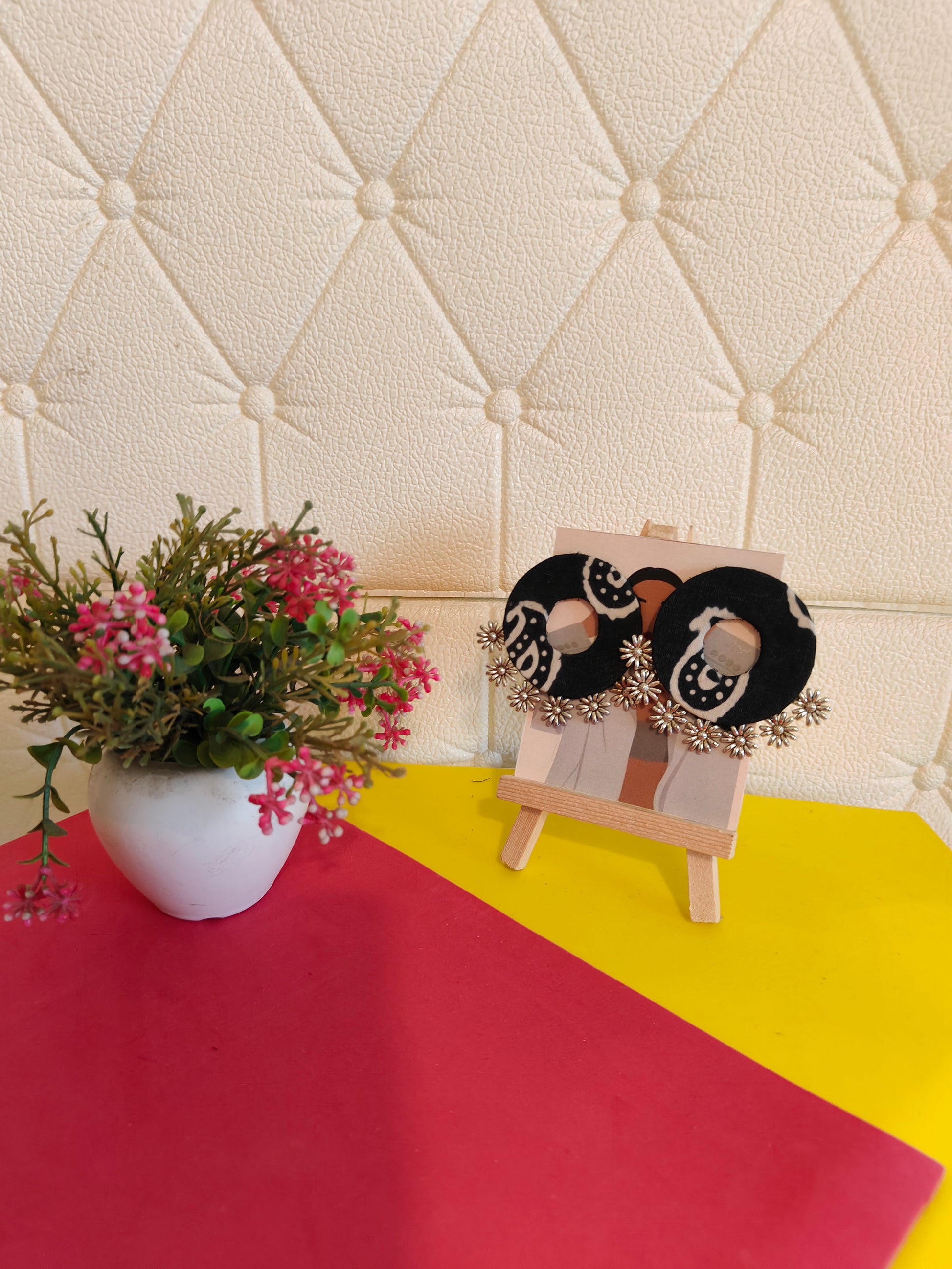 Indulge in opulent elegance with our oversized handcrafted earrings. These stunning studs are lovingly handmade with fabric, creating a unique and luxurious texture. Elevate your accessory game and make a statement with these one-of-a-kind earrings.
